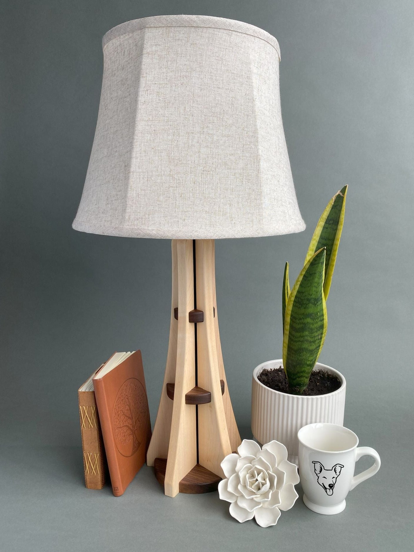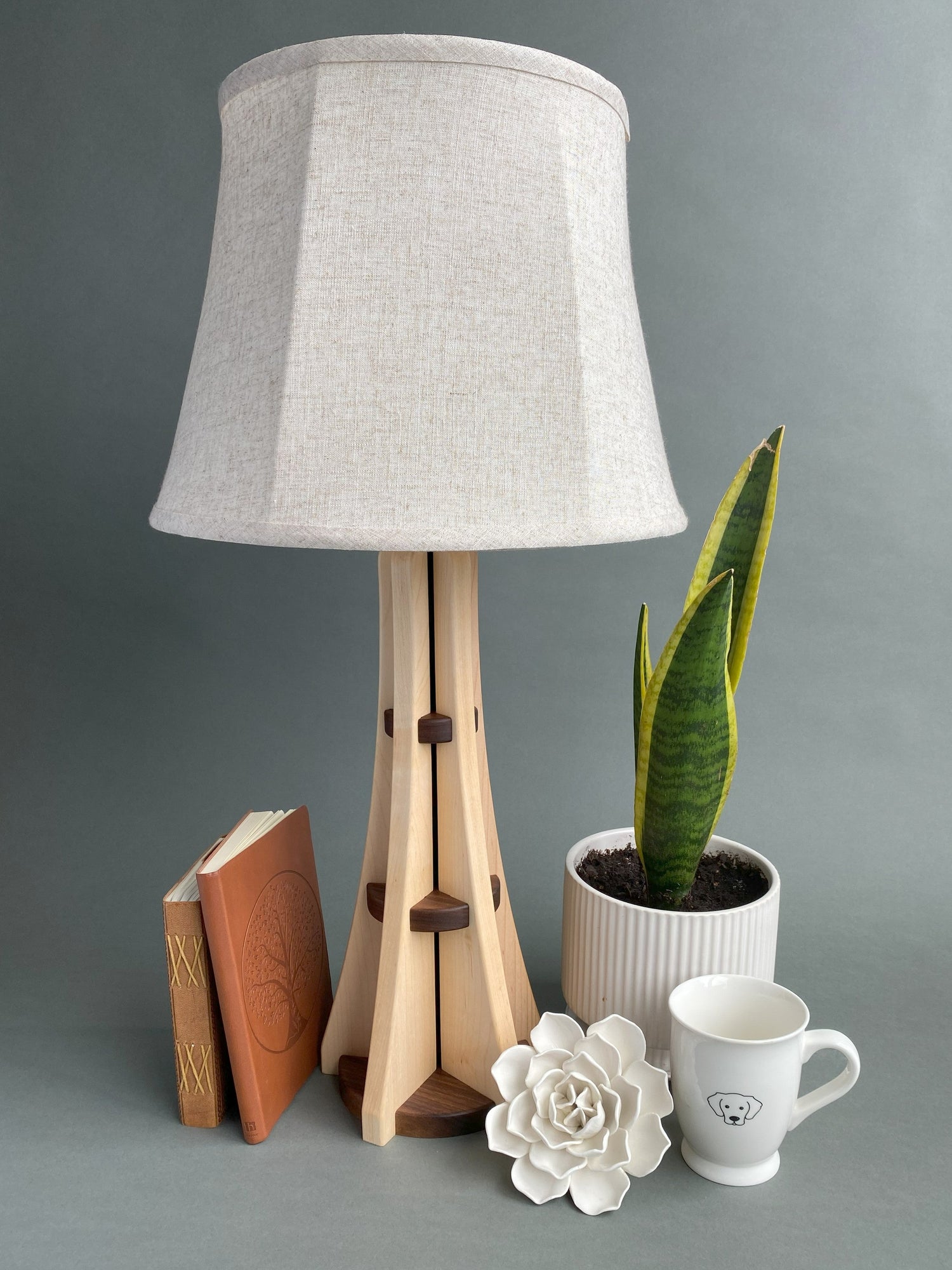 The Laughing Dog Table Lamp. Handcrafted from solid maple and walnut, each piece is a celebration of natural materials and thoughtful design. Built by hand in Harmony, PA.
